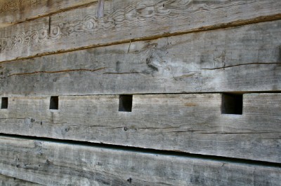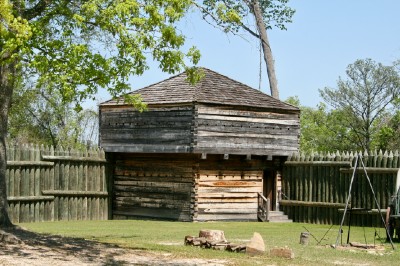| The blockhouses of the fort feature loopholes from which soldiers could fire on an attacking enemy. |