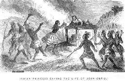 The Rescue of Juan Ortiz This fanciful 1858 illustration shows Princess Hirrihigua pleading for the life of Juan Ortiz.