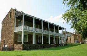 | Fort Gibson Historic Site today preserves a combination of original and reconstructed structures and ruins like the Quartermaster's Storehouse. |