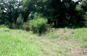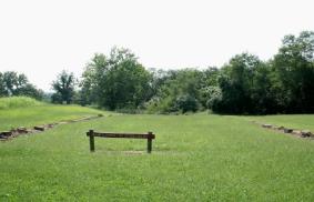 | The earthen mounds visible here were built by Union forces during the Civil War. A massive earthwork, called Fort Blunt, was built at Fort Gibson to protect Federal camps and supplies from Confederate attack. |