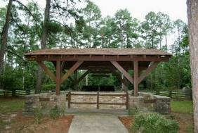 The interpretive shelter at Poison Spring State Park offers panels explaining the tactics of the battle.