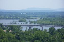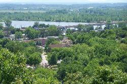 | As the Union troops crested the ridges overlooking Van Buren, the town spread out below them. |
