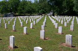 | The Confederate section of Fairview Cemetery preserves the graves of men who died at Prairie Grove, Cane Hill and Van Buren. |