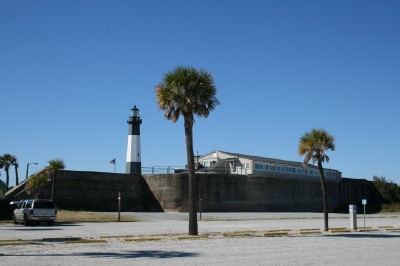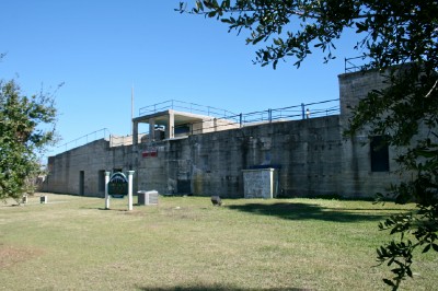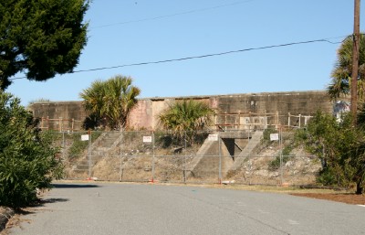 Fort Screven The concrete and steel of Battery Garland frames an artillery piece and historical marker at Fort Screven on beautiful Tybee Island, Georgia.