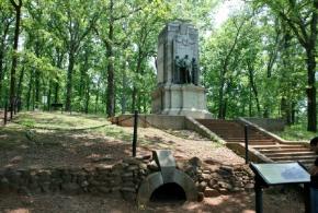 The tunnel and Illinois Monument can be seen at the Dead Angle. The Confederates were atop Cheatham Hill in the background. |