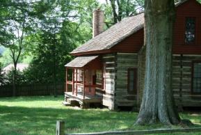 The beautiful old log Kolb House is the last surviving Civil War structure on the battlefield. It stands at the tour stop that commemorates the Kolb's Farm battle. |