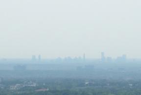 The skyline of Atlanta as seen from the top of Kennesaw Mountain. The battle was a last ditch stand to prevent Sherman from reaching the city. |