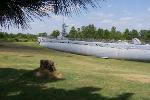 Today, the Batfish rests on the banks of a river adjacent to the Port of Muskogee,